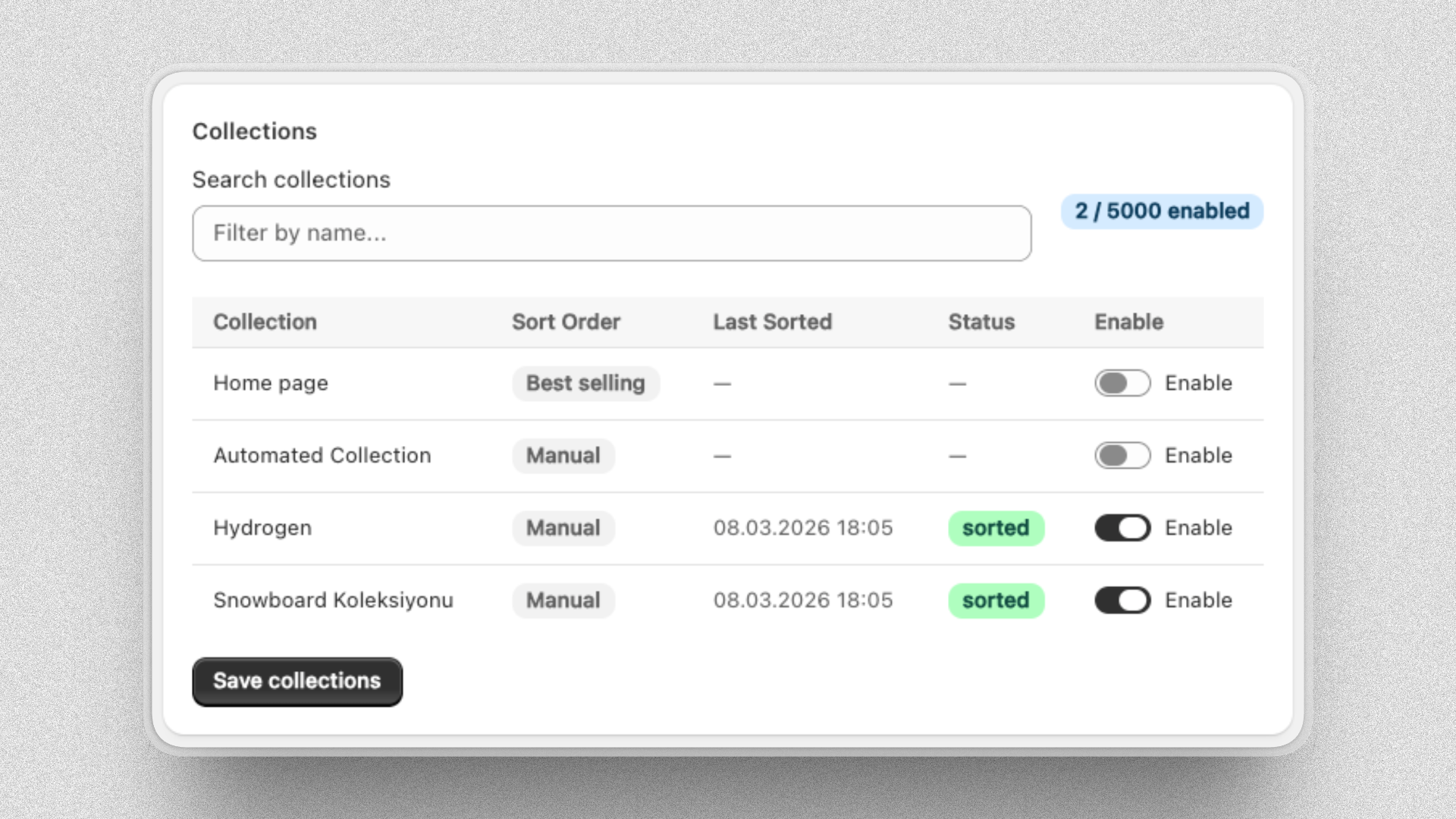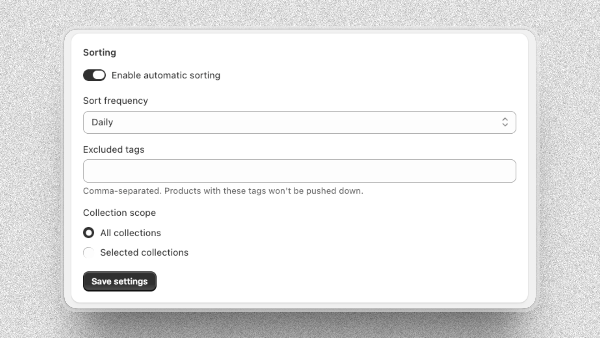 You choose. Run it on a handful of campaign collections or across your entire catalog — each collection can have its own sorting schedule and rules.