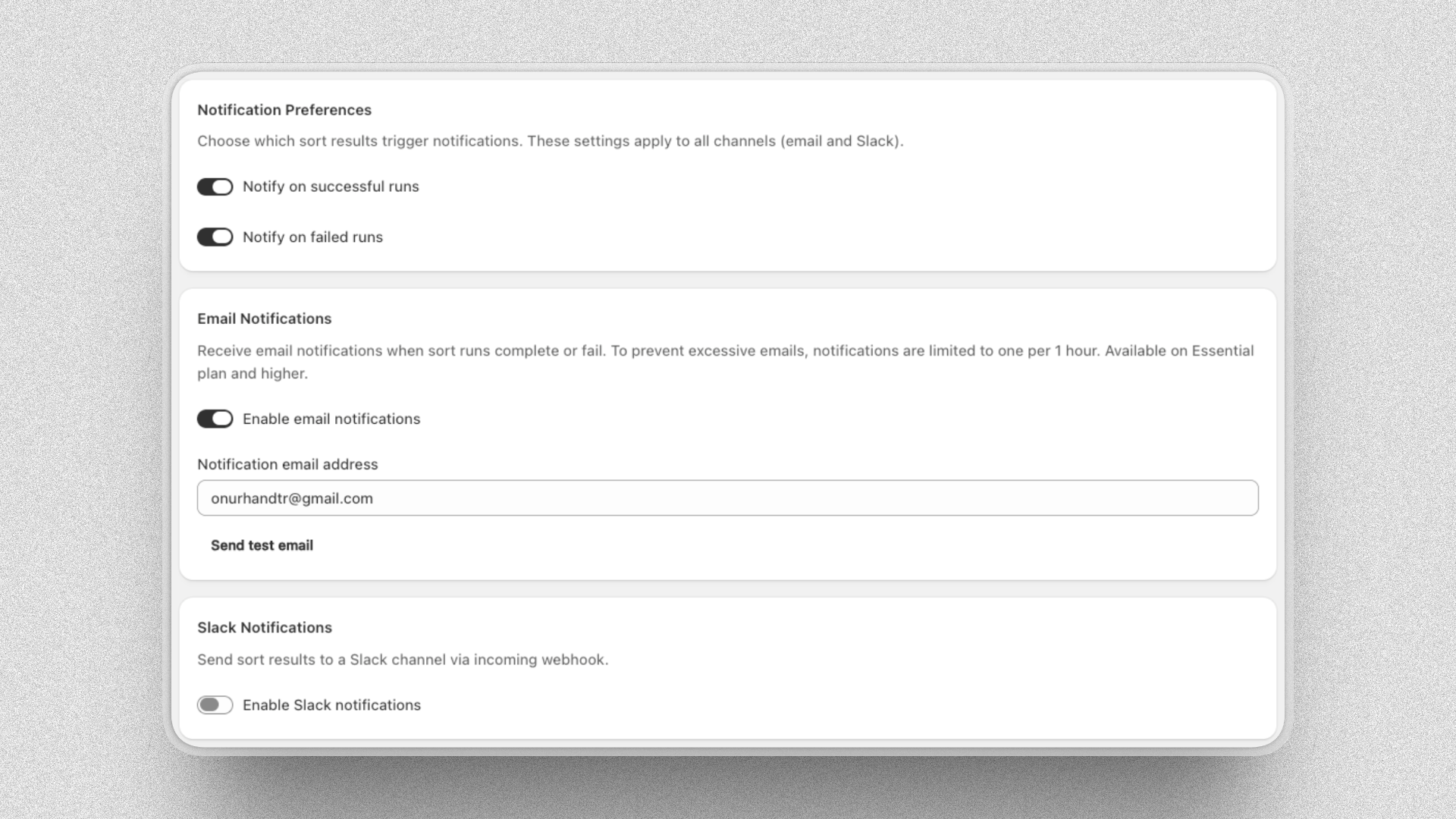 Outranked sends clear run summaries to email, Slack, or both. Everyone stays aligned without checking the admin.